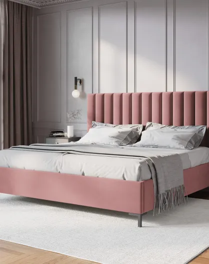 Apollo roze kofferbed met fluwelen hoofdeinde - 220x210x130cm