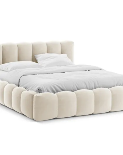 Bedbank met fluwelen hoofdeinde Tweepersoons Senna beige - 226x226x95cm