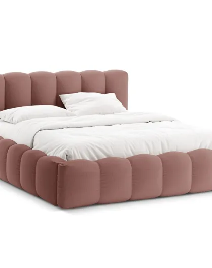 Borstbed met donkerroze Senna structuurstof hoofdeinde - 226x186x95cm