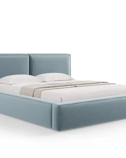Arendal lichtblauw tweepersoons fluwelen bed met fluwelen hoofdeinde - 228x234x97,5cm