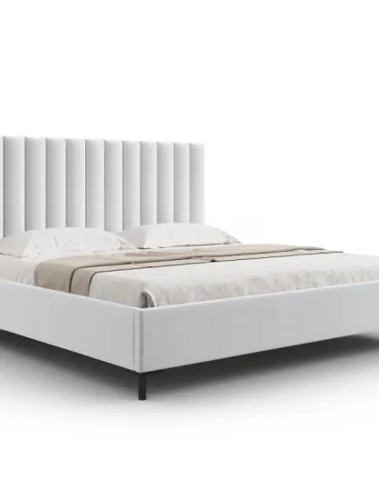 Apollo Kofferbed met hoofdeinde in koude lichtgrijze structuurstof - 220x150x130cm