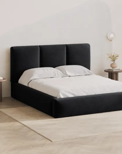 Bona zwart kofferbed met fluwelen hoofdeinde - 220x220x100cm