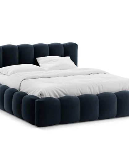 Borstbed met donkerblauw Senna tweepersoons fluwelen hoofdeinde - 226x226x95cm