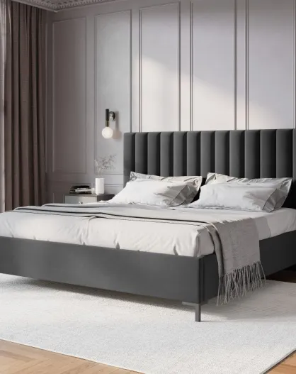 Stapelbed Apollo grijs met fluwelen hoofdeinde - 220x150x130cm