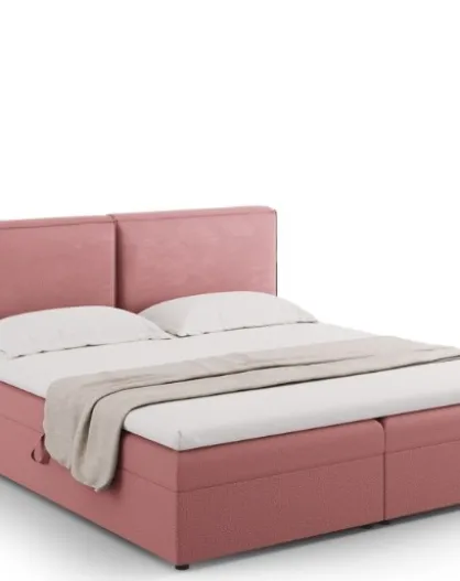 Arendal boxspringset roze structuurstof - 210x166x100cm
