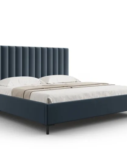 Apollo donkerblauw kofferbed met hoofdeinde van structurele stof - 220x150x130cm