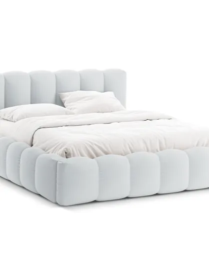 Kofferbed met hoofdeinde in lichtgrijze structuurstof Senna - 226x166x95cm