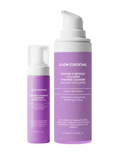 Collageen herstellend en hydraterend serum 30 ml + schuimende reiniger voor herstel en verfrissing van collageen 200 ml