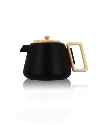 Viggo zwarte gietijzeren theepot met handvat, houten deksel - 50cl