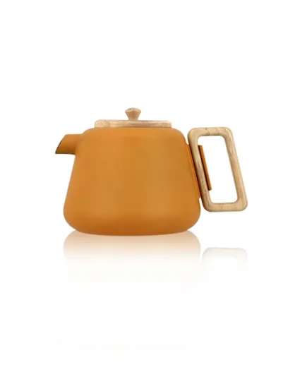 Viggo gele gietijzeren theepot met handvat, houten deksel - 50cl