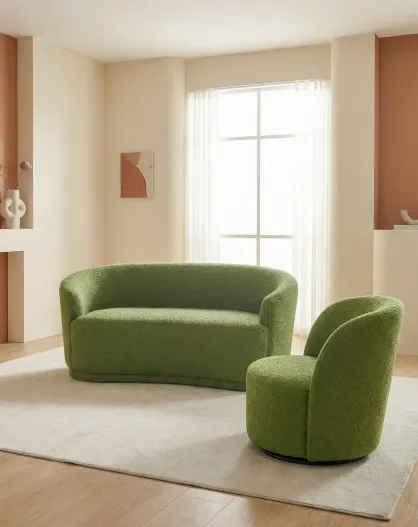 2-zitsbank olijfgroene krulstof - 148x73x77,5 cm
