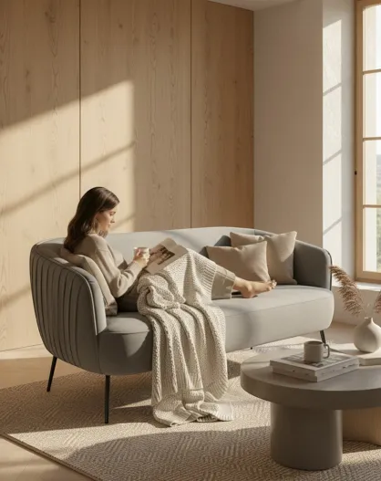 Bank met plisséeffect in grijze stof - 180x80x74 cm