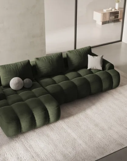 Omvormbare fluwelen linkerhoekbank met groene 3-zits opbergbox - 275x142x84 cm