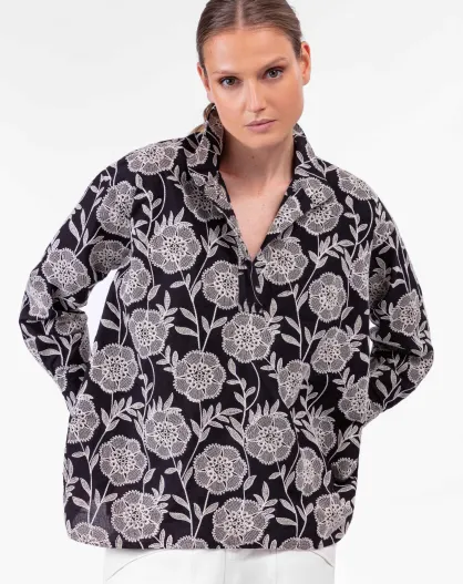 Lyse zwart/beige katoenen blouse