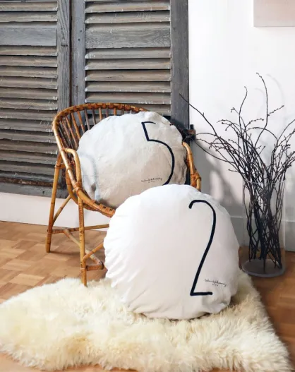 Rond linnen kussen met natuurlijke zeefdruk - 63 cm