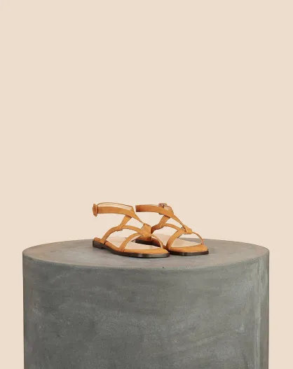 Doréigami platte sandalen van hazelnootsuède