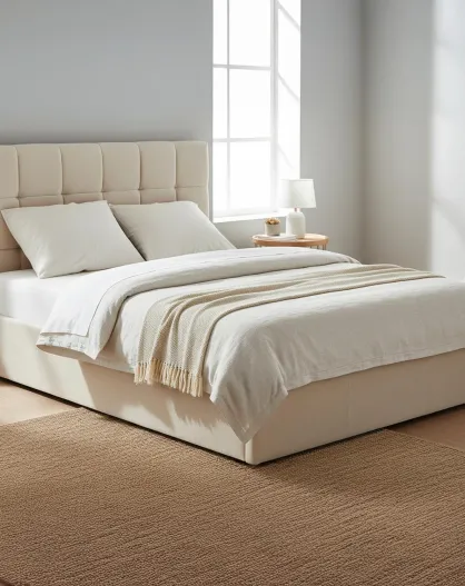 Luftani tweepersoonsbed met beige fluwelen hefbodem - 140x190cm