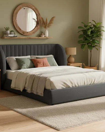 Volledig veilig bed met modulair hoofdeinde Cocoon donkergrijze stof - 256x219x110 cm