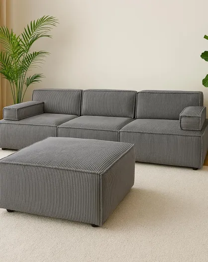 Modulaire bank Benoit grijs corduroy - 258x172x68 cm