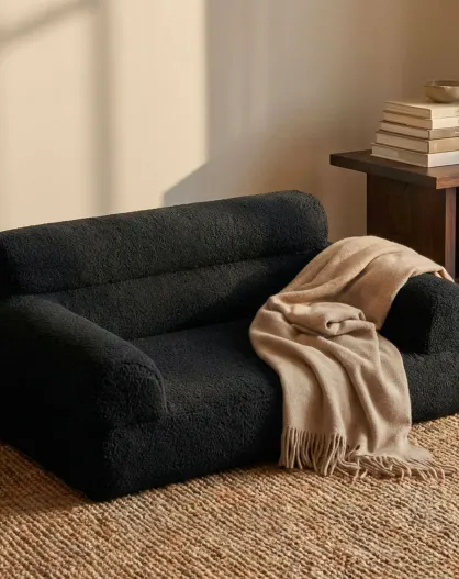 Titou bank voor honden en katten in zwarte krullende stof - 80x52x32 cm