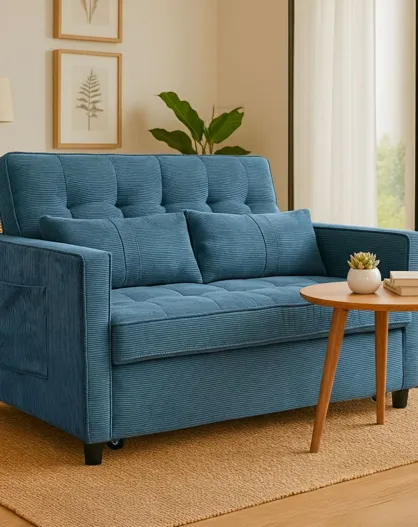 Komaria blauwe 2-zits corduroy slaapbank - 133x94x87 cm