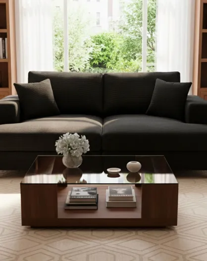 Duo van Fabien-dagbedden die kunnen worden gecombineerd tot een diepzwarte corduroy bank - 196x150x90 cm/98x150x90 cm