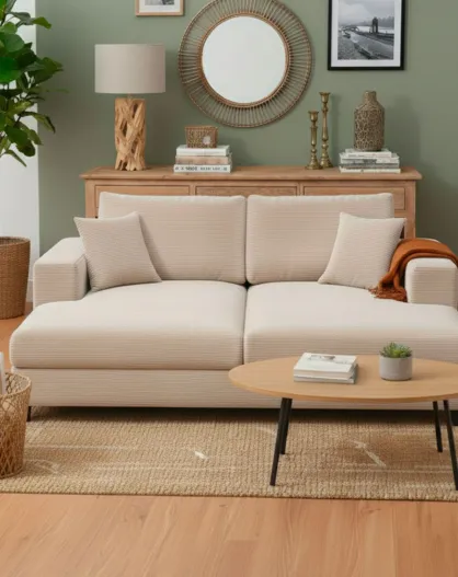 Duo van Fabien-dagbedden die kunnen worden gecombineerd tot een diepe crèmekleurige corduroy bank - 196x150x90 cm