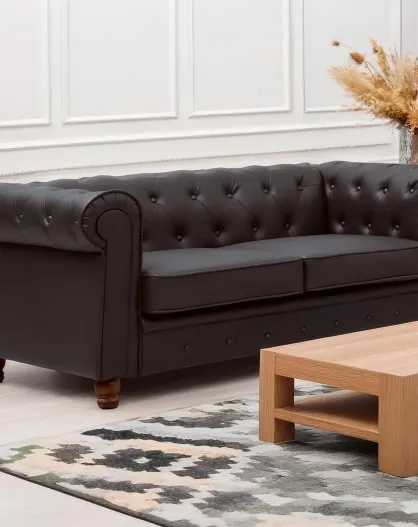 Grote bruine Chesterfield 2-zitsbank - 158x82x72 cm