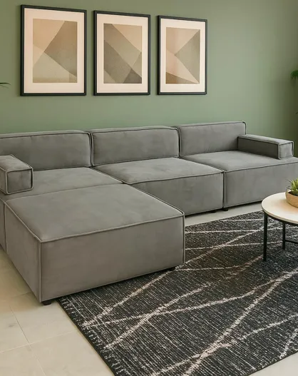 Benoit fluwelen modulaire bank grijs taupe - 258x172x68 cm