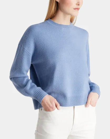 Sean sweater met losse doos, losse stof van wol en kasjmier, middenblauw
