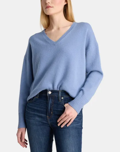 Middelblauwe rechte trui van Ceylanwol en kasjmier