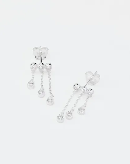 Zilveren oorbellen met een klein staafje van 3 ronde oxiden