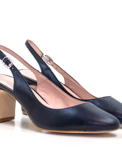 Zwarte leren pumps van Selma - Hak: 7 cm