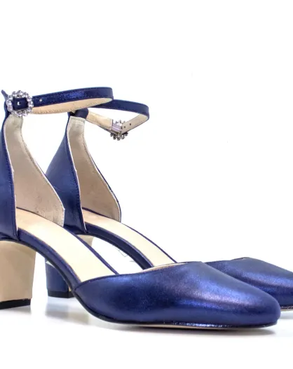 Xenia marineblauwe leren pumps - Hak: 6 cm