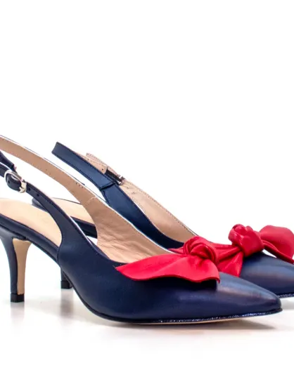 Donkerblauwe leren pumps van Dina - Hak: 6,5 cm