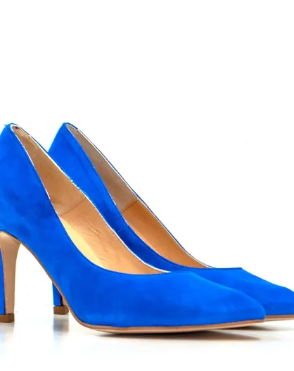 Paula elektrische blauwe suède pumps - Hak: 7 cm