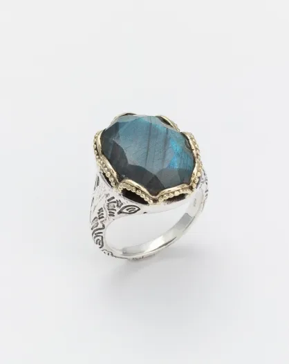 Namaste Labradoriet ring van zilver en messing
