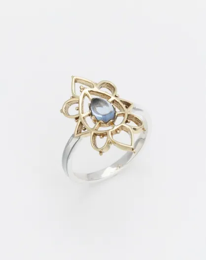 Hanie ring van zilver en messing, Tanzaniet glas in lood