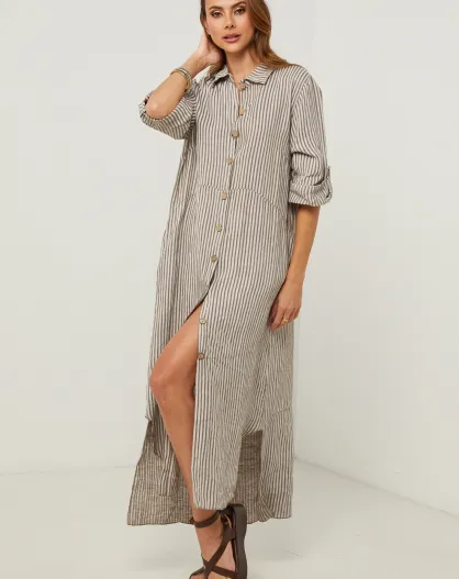 Irine taupe linnen jurk