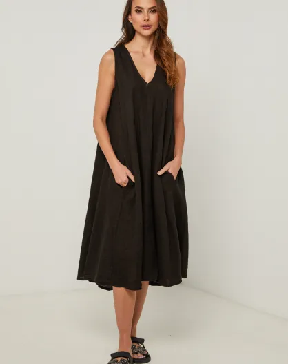 Zwarte linnen jurk van Merkiel