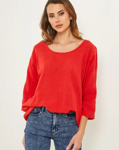 Rode katoenen top Baronne