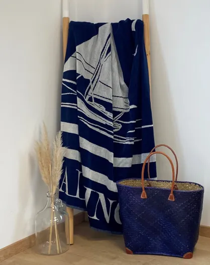 Oceanside Oceanside Jacquard Velvet Terry Strandhanddoek Marineblauw - 140x180 cm