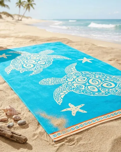 Caraz blauwe jacquard fluwelen badstof strandlaken - 100x175 cm