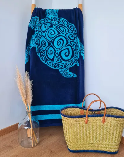 Pavlos blauwe jacquard fluwelen badstof strandlaken - 90x170 cm