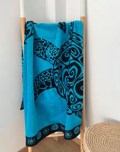 Turtle Turtle blauwe jacquard fluwelen badstof strandhanddoek - 100x175 cm