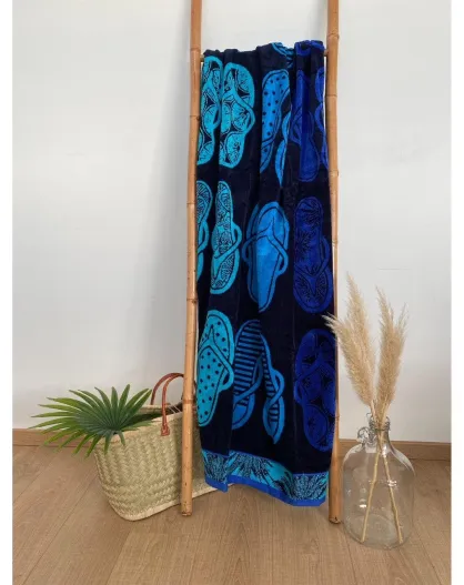 Soto blauwe jacquard fluwelen badstof strandhanddoek - 100x175 cm