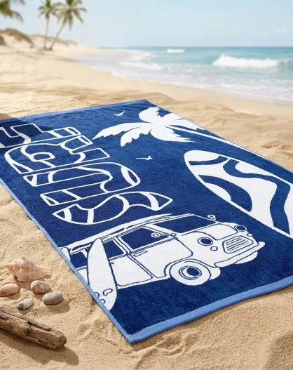 Montego marineblauwe jacquard fluwelen badstof strandhanddoek - 90x170 cm