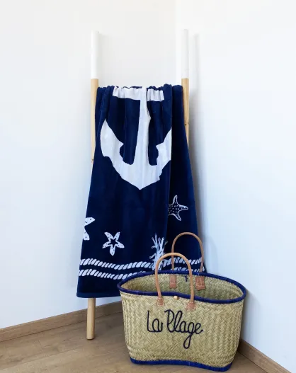 Oakland marineblauwe jacquard fluwelen badstof strandlaken - 100x175 cm
