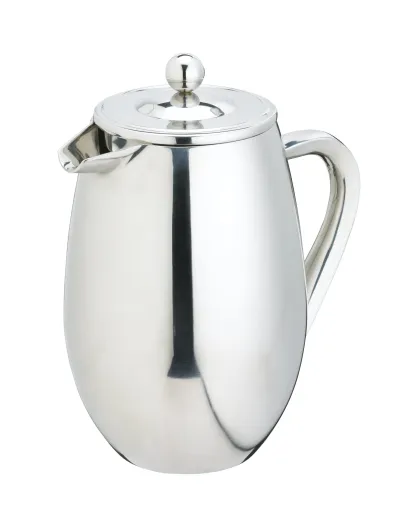 LC dubbelwandige Franse pers van zilverkleurig roestvrij staal met 8 kopjes - 1L