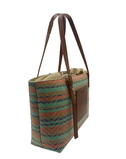 Azura leren draagtas cognac/multi blauw - 28 x20 x11cm